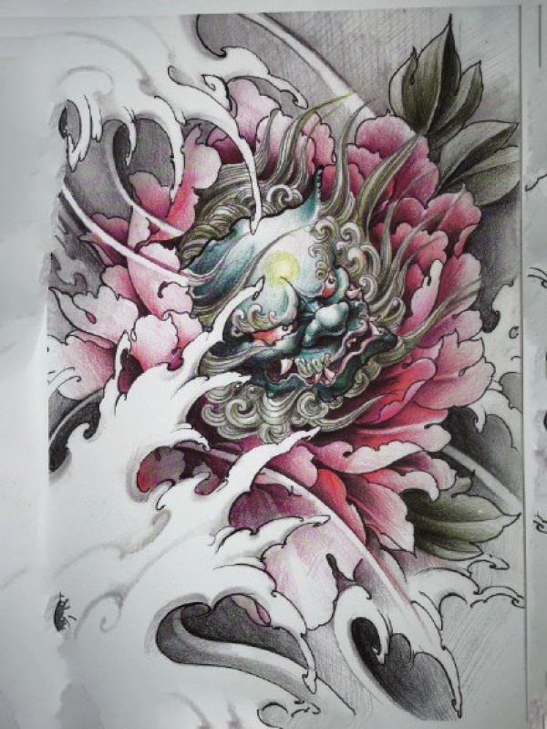 半甲唐狮手稿 传统的9款唐狮主题半甲纹身手稿图片