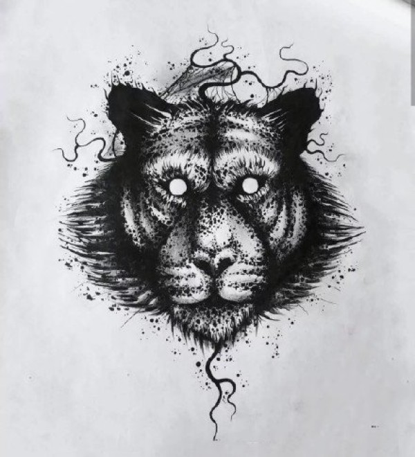 半甲唐狮手稿 传统的9款唐狮主题半甲纹身手稿图片
