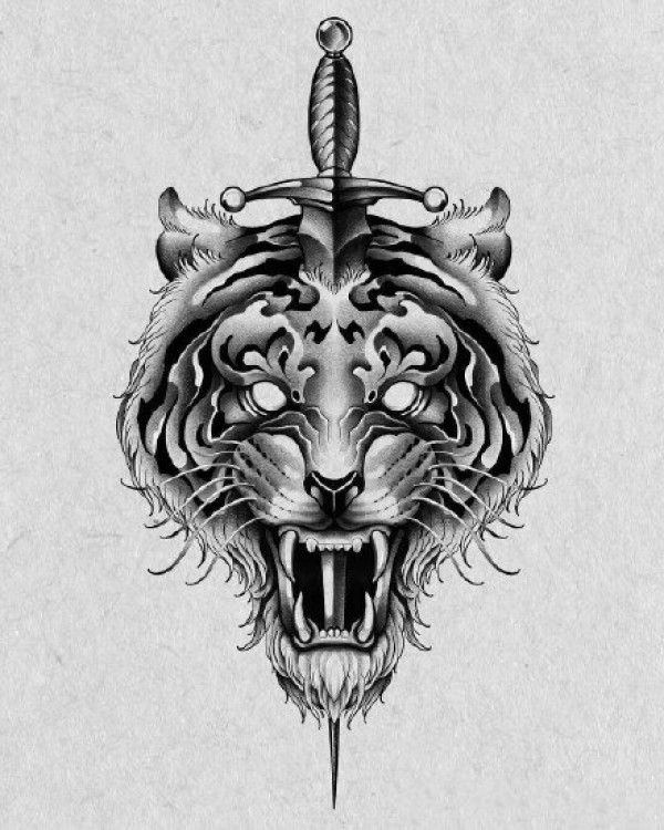 半甲唐狮手稿 传统的9款唐狮主题半甲纹身手稿图片