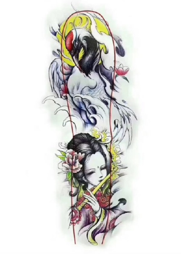 传统艺妓般若纹身图案手稿