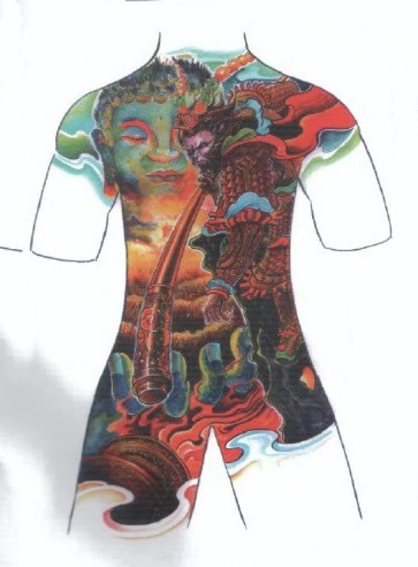 一组满背大气九龙拉棺纹身图案作品和手稿