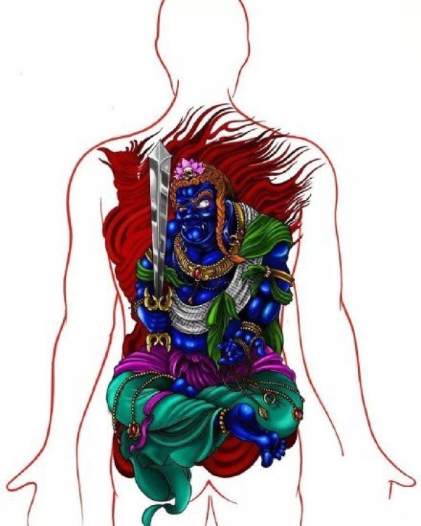 一组满背大气九龙拉棺纹身图案作品和手稿