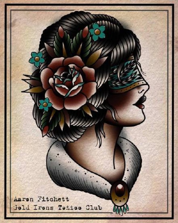 传统艺妓般若纹身图案手稿