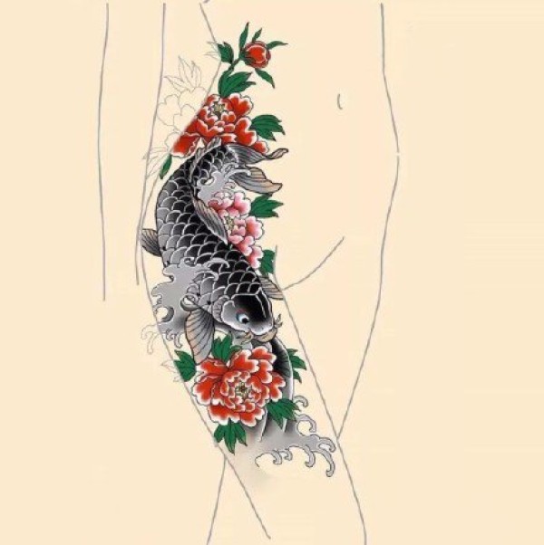 传统的30款鲤鱼纹身手稿图片赏析