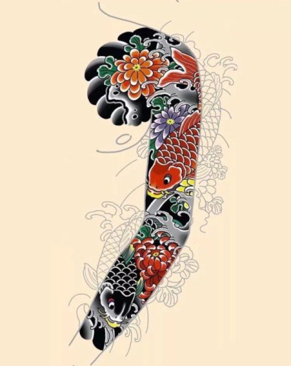传统的30款鲤鱼纹身手稿图片赏析
