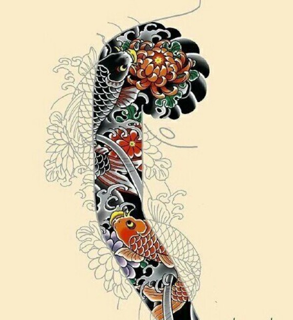传统的30款鲤鱼纹身手稿图片赏析