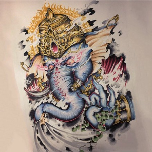 半甲唐狮手稿 传统的9款唐狮主题半甲纹身手稿图片