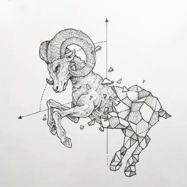 22款几何碎片搭配动物的创意纹身手稿图片