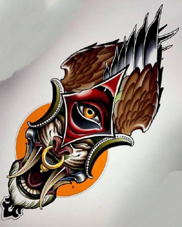 35款newschool风格的炫彩色纹身手稿图片