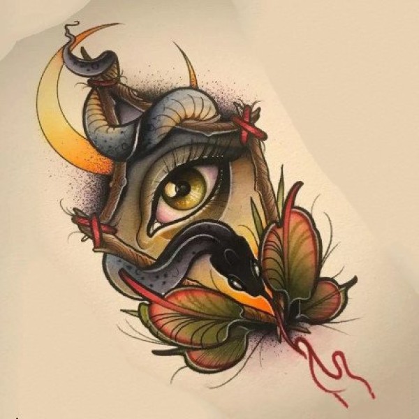 35款newschool风格的炫彩色纹身手稿图片