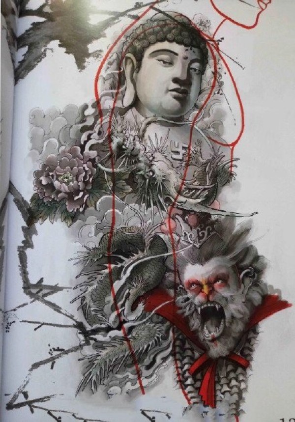 9款传统的包臂大花臂纹身手稿效果图欣赏