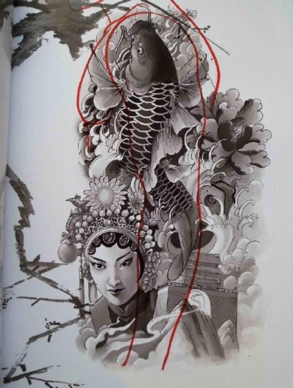 传统的30款鲤鱼纹身手稿图片赏析