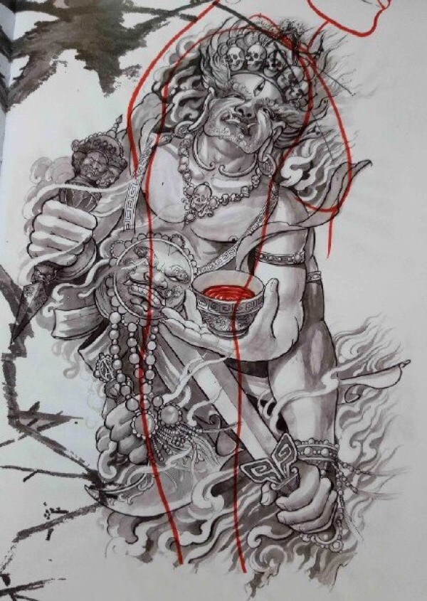 9款传统的包臂大花臂纹身手稿效果图欣赏
