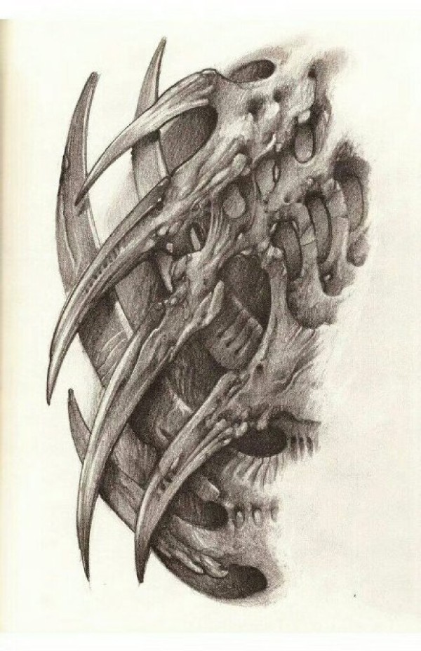 一组立体感超强的3D风格机械纹身手稿