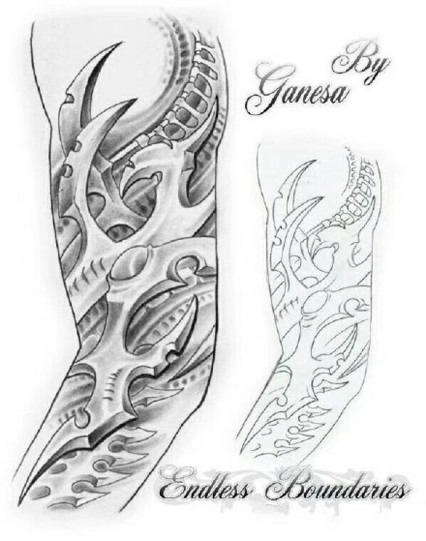一组立体感超强的3D风格机械纹身手稿