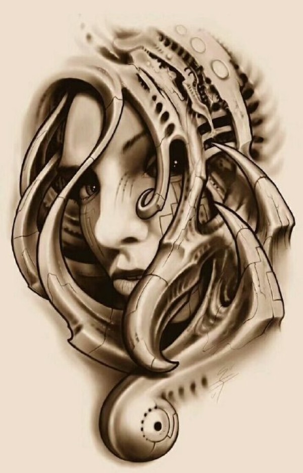 一组立体感超强的3D风格机械纹身手稿