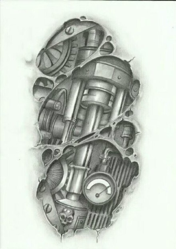 一组立体感超强的3D风格机械纹身手稿