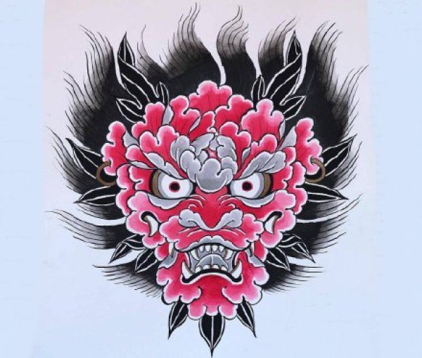 传统艺妓般若纹身图案手稿
