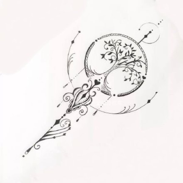 漂亮的一组适合脊柱和小臂的简约纹身手稿图片