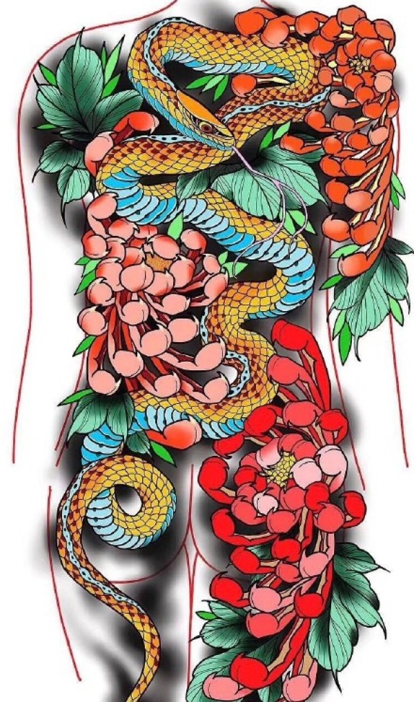 日式大板雾满背纹身手稿