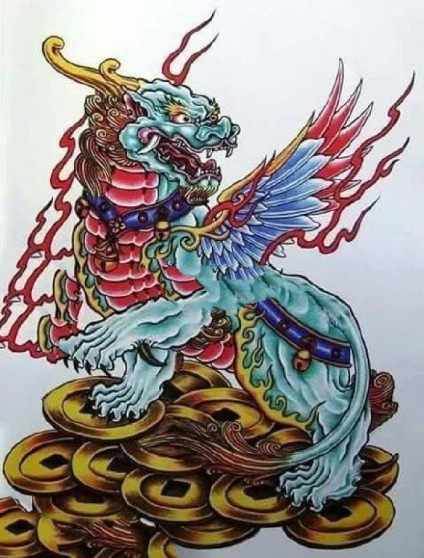 半甲唐狮手稿 传统的9款唐狮主题半甲纹身手稿图片