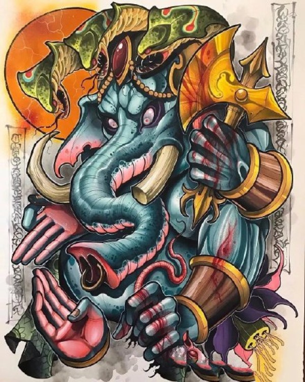 半甲唐狮手稿 传统的9款唐狮主题半甲纹身手稿图片
