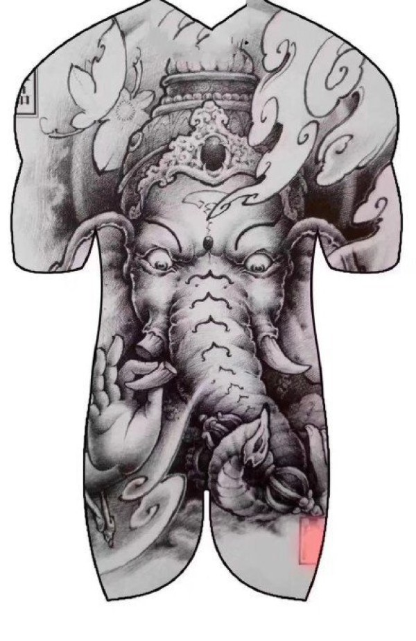 一组满背大气九龙拉棺纹身图案作品和手稿