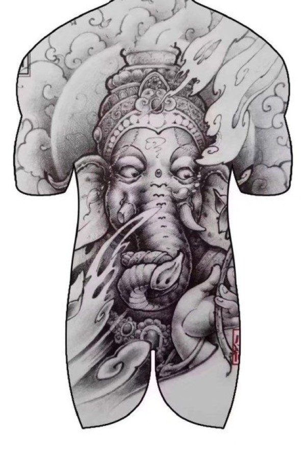 一组满背大气九龙拉棺纹身图案作品和手稿