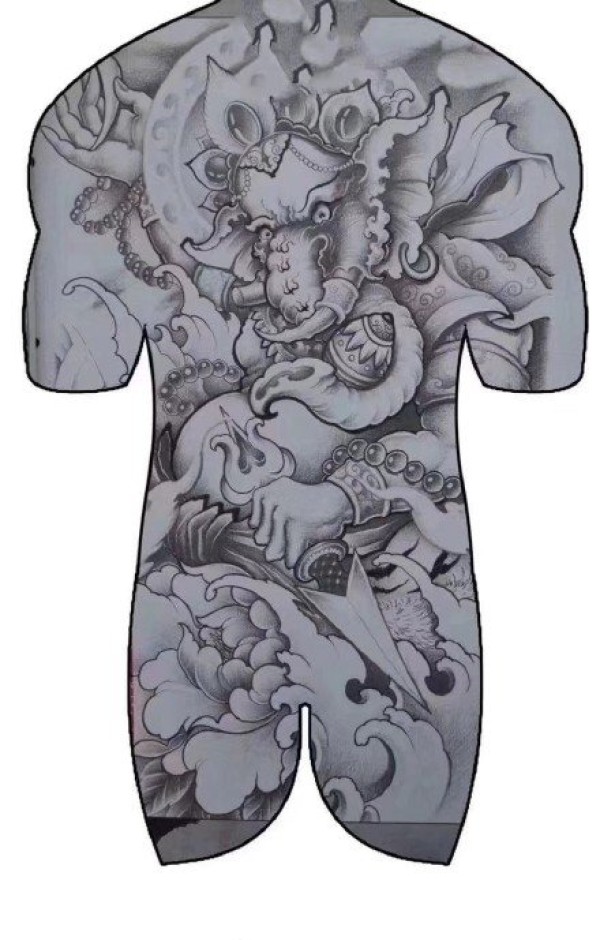 一组满背大气九龙拉棺纹身图案作品和手稿