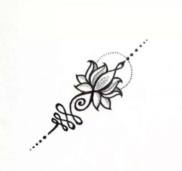 适合脊柱处纹的荷花莲花纹身图片手稿