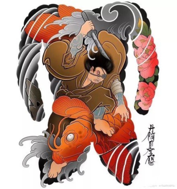 传统的30款鲤鱼纹身手稿图片赏析
