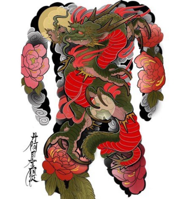 日式大板雾满背纹身手稿