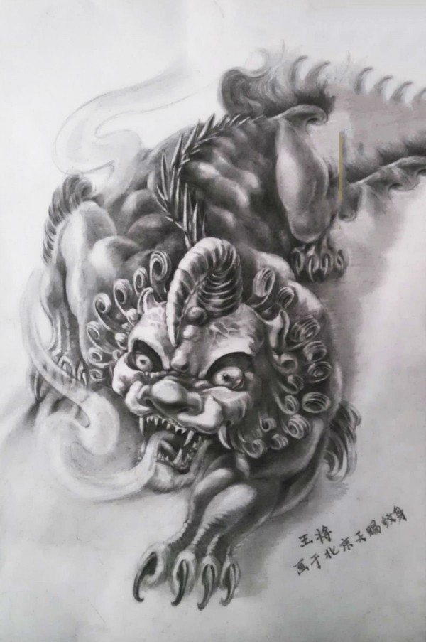 半甲唐狮手稿 传统的9款唐狮主题半甲纹身手稿图片