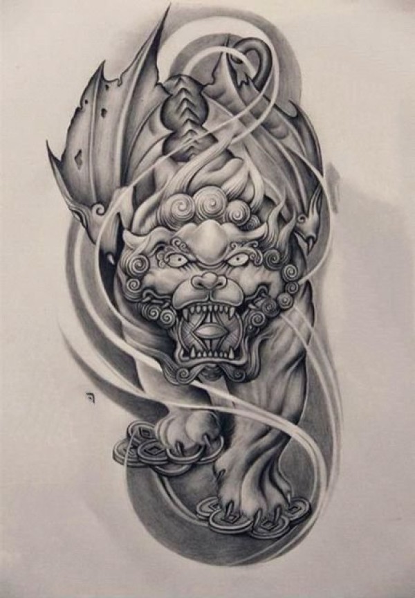 半甲唐狮手稿 传统的9款唐狮主题半甲纹身手稿图片