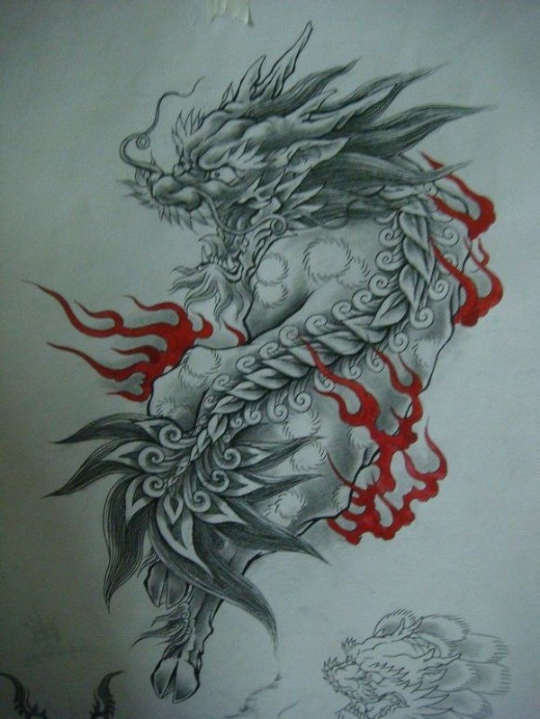 半甲唐狮手稿 传统的9款唐狮主题半甲纹身手稿图片