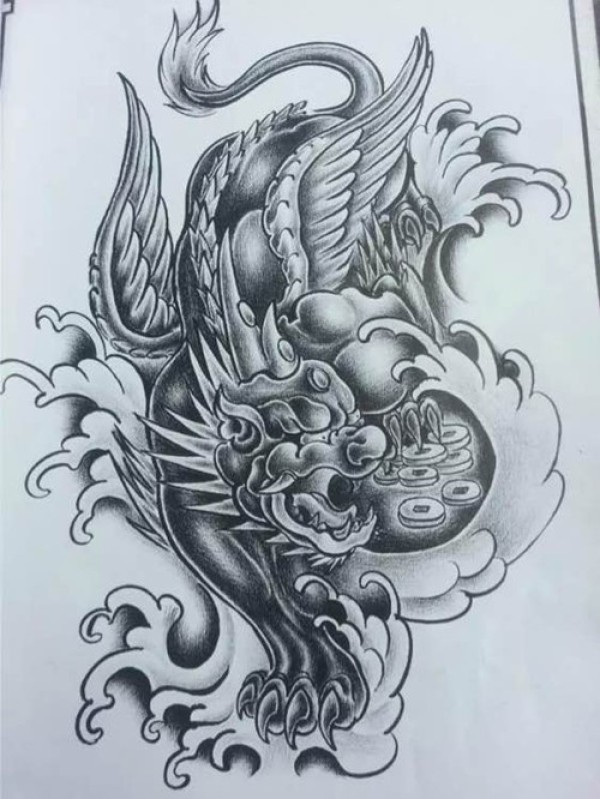 50组传说中的麒麟貔貅等神兽纹身手稿图案