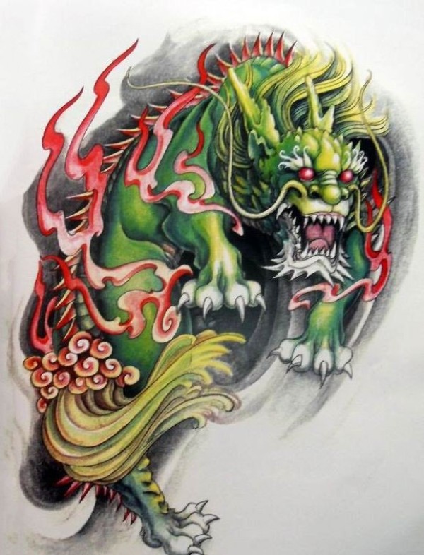 50组传说中的麒麟貔貅等神兽纹身手稿图案