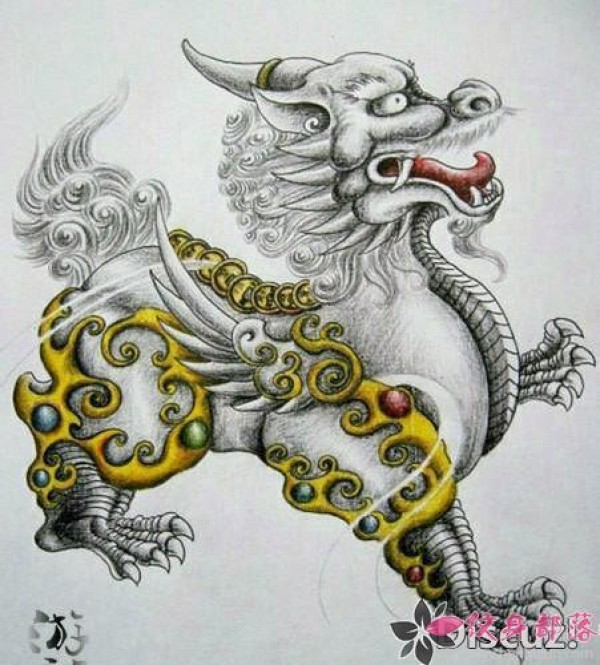 50组传说中的麒麟貔貅等神兽纹身手稿图案