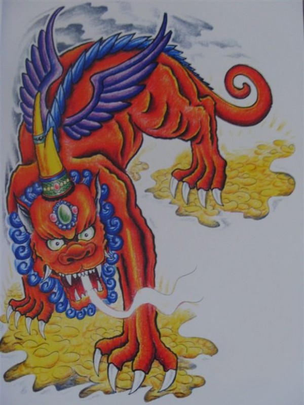 半甲唐狮手稿 传统的9款唐狮主题半甲纹身手稿图片