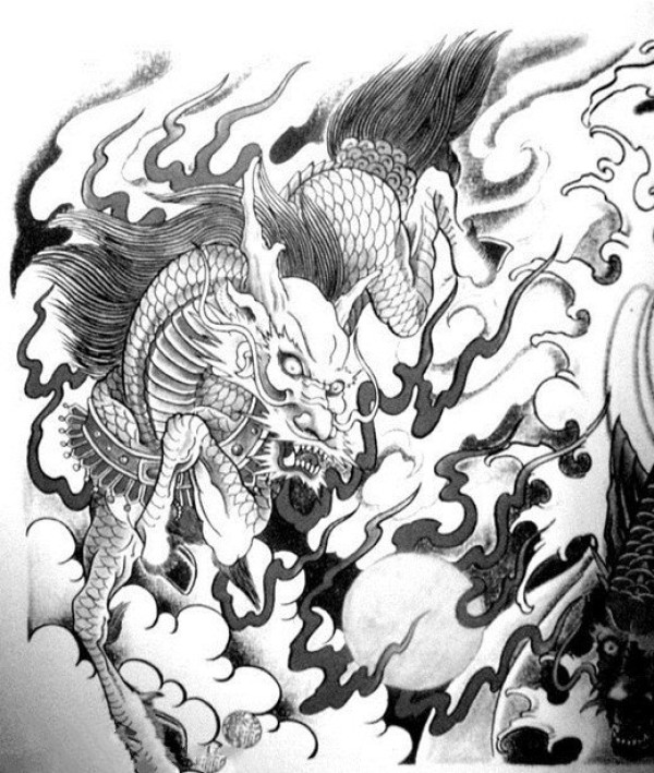 50组传说中的麒麟貔貅等神兽纹身手稿图案