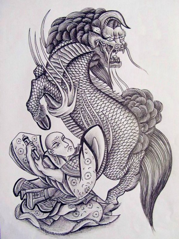 半甲唐狮手稿 传统的9款唐狮主题半甲纹身手稿图片