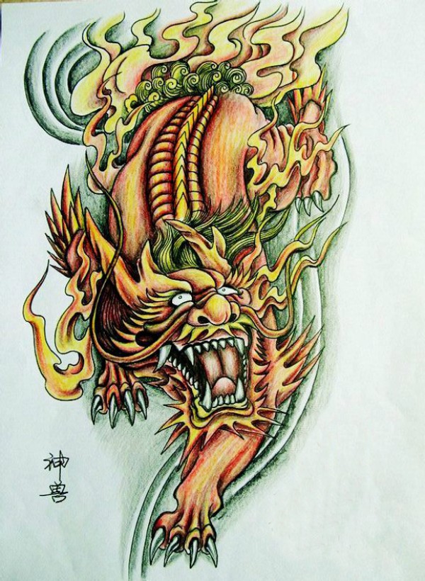 50组传说中的麒麟貔貅等神兽纹身手稿图案