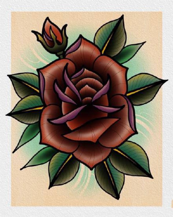 红色的一组school艳丽玫瑰花纹身手稿图案
