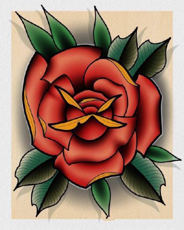 红色的一组school艳丽玫瑰花纹身手稿图案