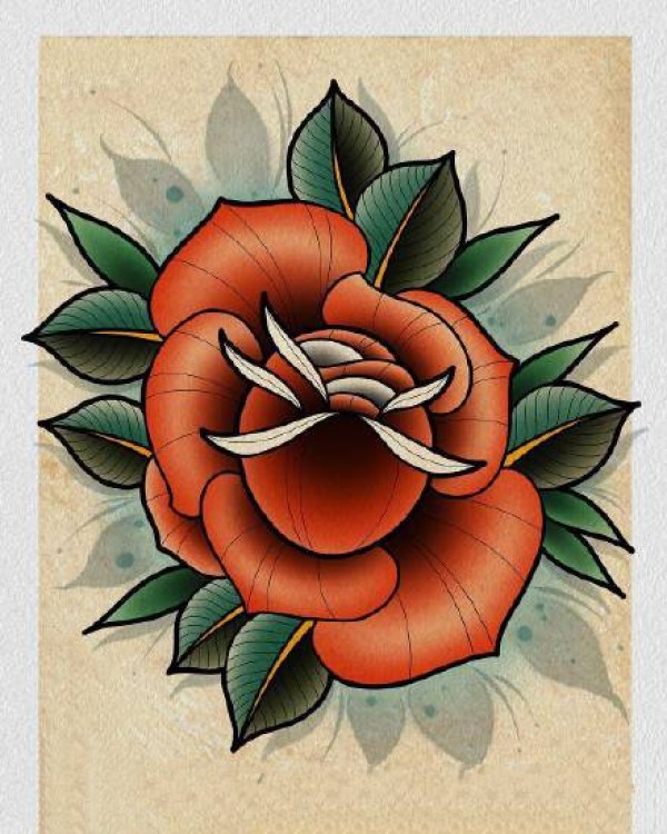 红色的一组school艳丽玫瑰花纹身手稿图案