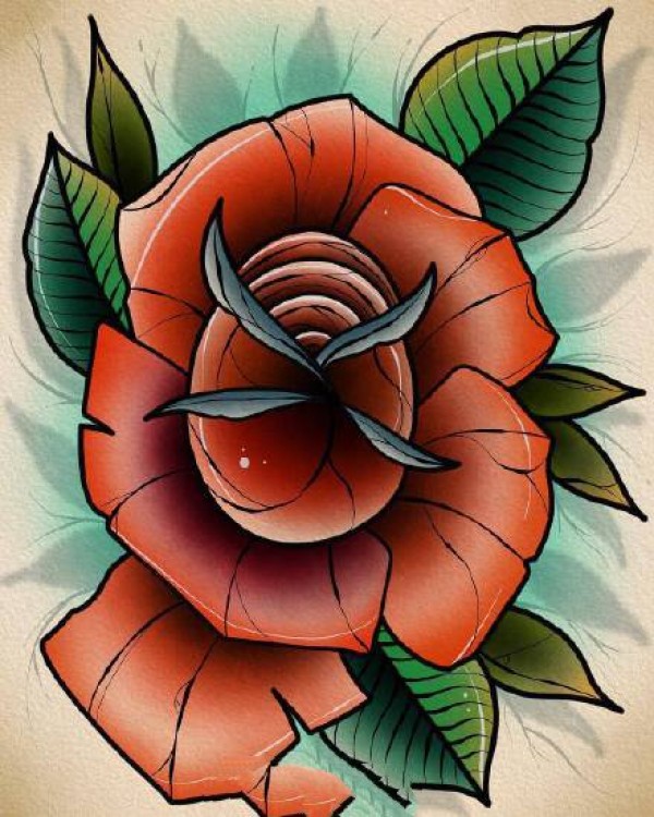 红色的一组school艳丽玫瑰花纹身手稿图案