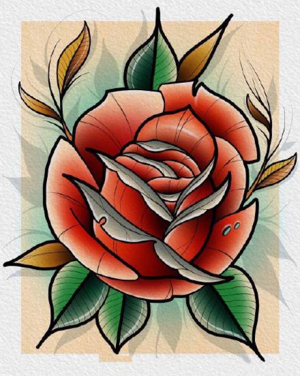 红色的一组school艳丽玫瑰花纹身手稿图案
