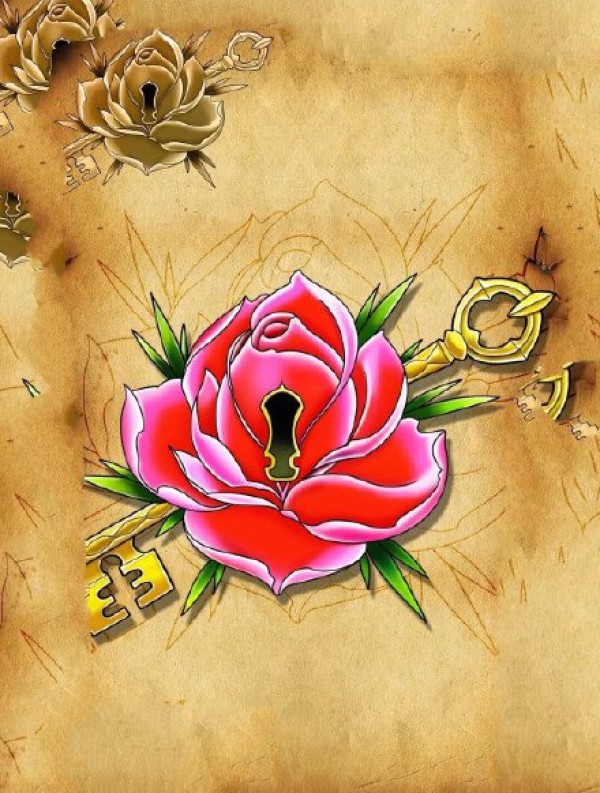 漂亮的一组彩色玫瑰花朵纹身手稿图片