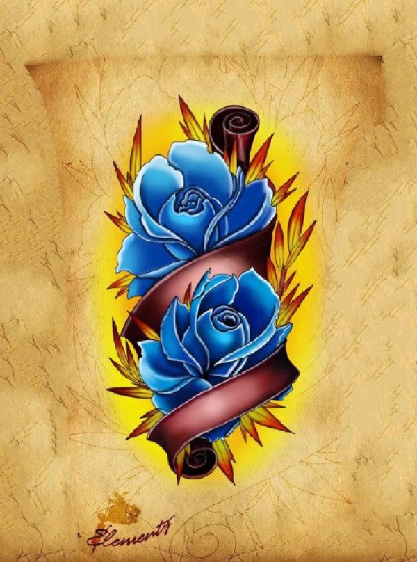 漂亮的一组彩色玫瑰花朵纹身手稿图片