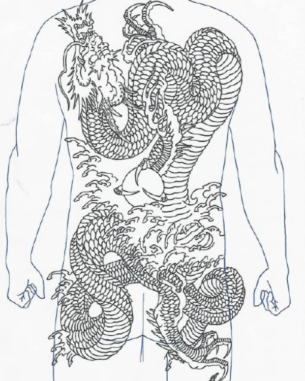 一组满背大气九龙拉棺纹身图案作品和手稿